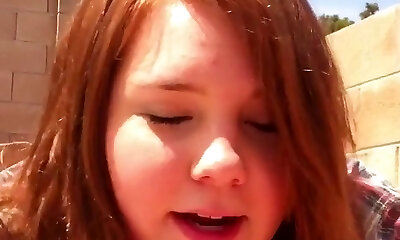 Red haired BBW Eliza Allure gives a suck off and gets her good-sized ass slammed