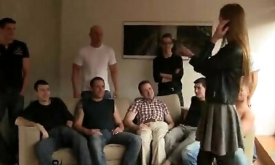Six huge dicks are still not enough to satisfy that slut in gang bang