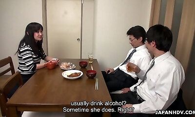 Too tired husband falls asleep while his colleague ravages his wife Risa Kurokawa